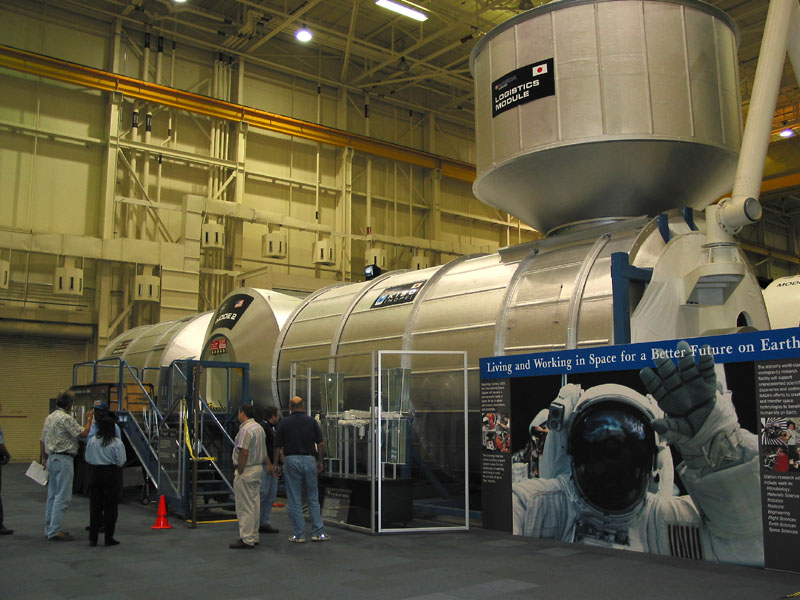 full-size mock-ups of the shuttle and various space station modules.