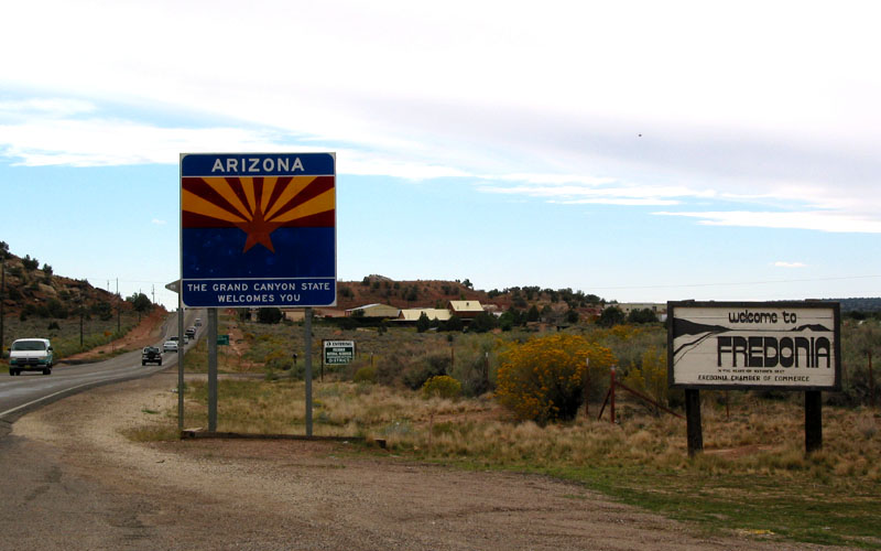 I crossed into Arizona about 1:30 in the afternoon, near Fredonia. Arizona north of the Grand Canyon is known as the Arizona Strip. It is lonely, expansive, high red desert, very remote and a long way away from population centers. It is the home of ranchers, Navaho and Hopi Indians, and some remaining polygamist sects of the Mormon church (the legal handling of which is the subject of some controversy in the current Arizona gubernatorial campaigns). Although I have lived in Arizona for over 21 years, this northernmost reach of the state is a place I have never seen before.