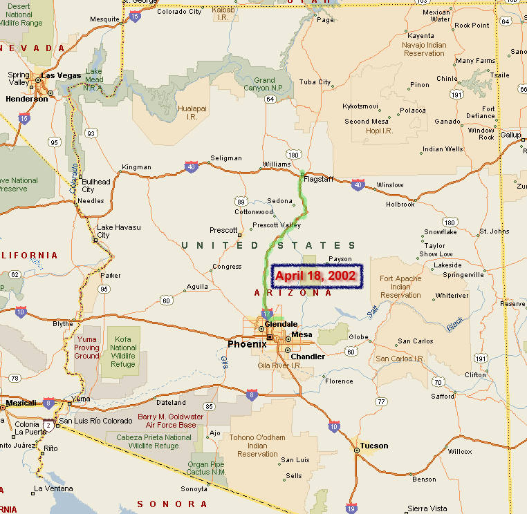 First leg, Scottsdale to Flagstaff, to spend the evening and following morning with Pat