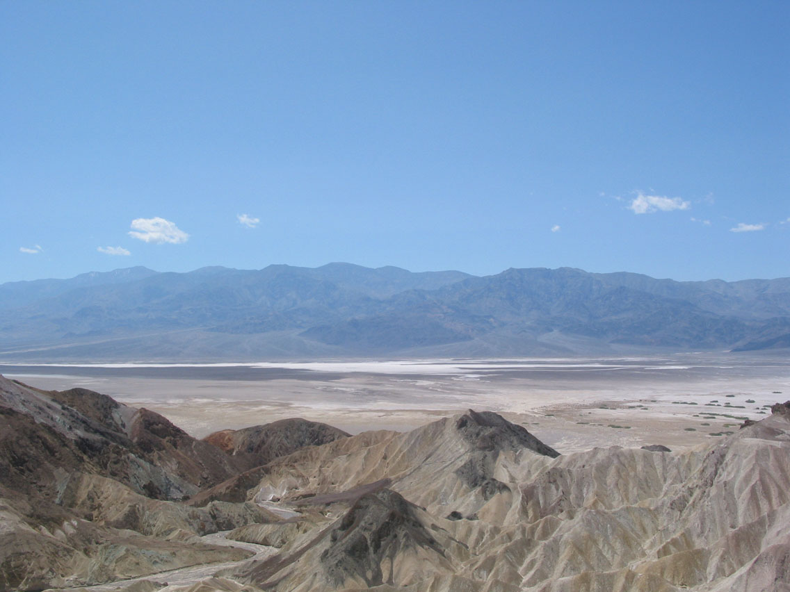 We cross the final ridge into Death Valley, and the drop-off is dramatic.