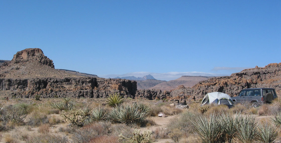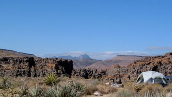 Eventually I tire, lay down to read for a while, and go to sleep. Until about 2:00 AM, that is. The gentle breeze of the early evening had grown into an ominous howl. My tent flapped and thrashed relentlessly for the remainining part of the night, making sleep impossible. For a while I was convinced that the tent and I would be taking a Wizard-Of-Oz type trip - except instead of landing someplace fun like Munchkinland, I'd come down someplace like the Walmart parking lot in Needles.