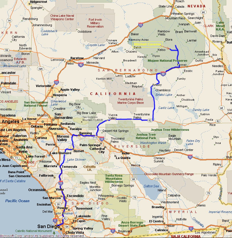 After a short jog on I-10 to get through the Banning Pass, I once again took some back roads (which were for the most part still fast, even if I had to pass through a few towns). I finally reached San Diego and the home of Mike and Lindsay about 9:00 PM, where I was greeted warmly by these people I hadn't actually seen in 5 1/2 years.