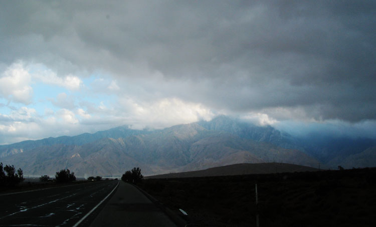 Outside of Twenty Nine Palms, the wind kicks up even more, clouds roll