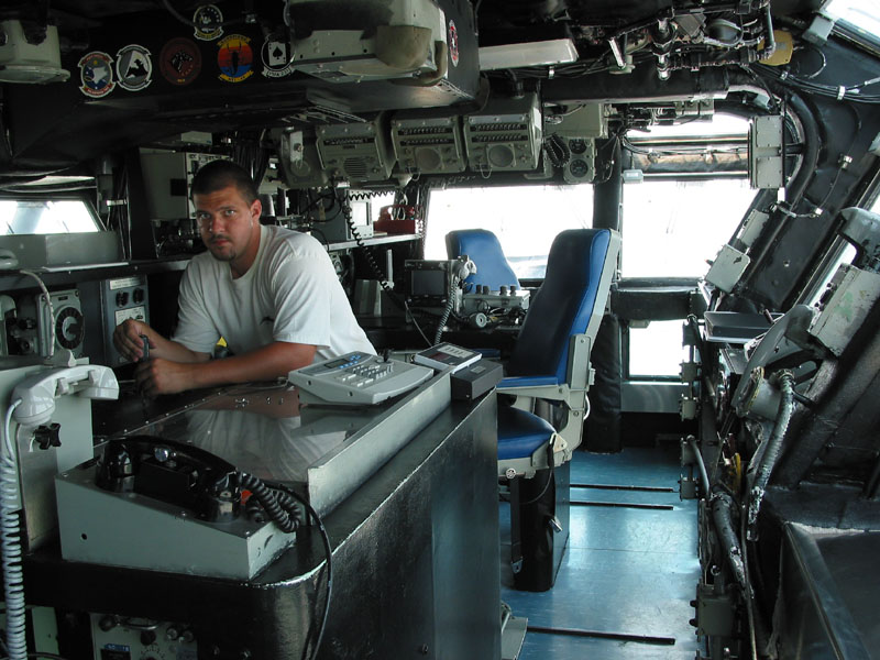 Pete and Nick showed me just about everything, from the bridge above to the engineering spaces (power and propulsion) below. The officer that Pete shares quarters with (I should learn to write names down) gave me an informative run-down on the functions of the stations and systems in the CIC. The whole thing was fascinating, and added a lot to the little bit of knowledge I picked up way-back-when I was at sea for a summer when I was 19.