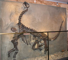 Below left is the skeleton of a young apatosaurus, an herbivourus species,