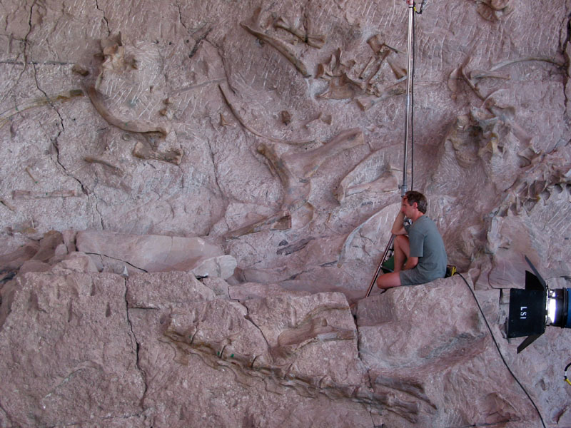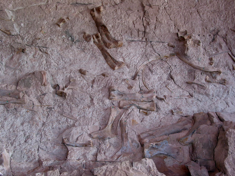 larger, fully adult specimens of apatosaurus are in the quarry rock face,