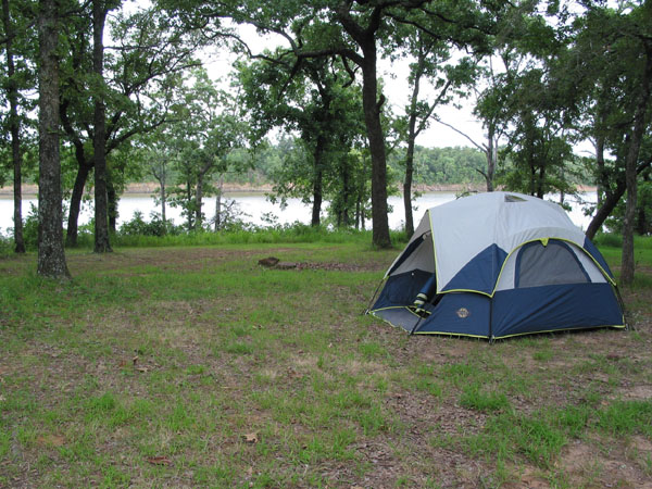 As it turns out, when I got to the Tulsa area, I looked on the map and saw there were a number of large lakes. Since big lakes have a tendency to be surrounded by recreation areas, especially in this part of the country where fishing trips are regarded as religious retreats, I headed for Lake Euphaula and found a plethora of camping opportunities.