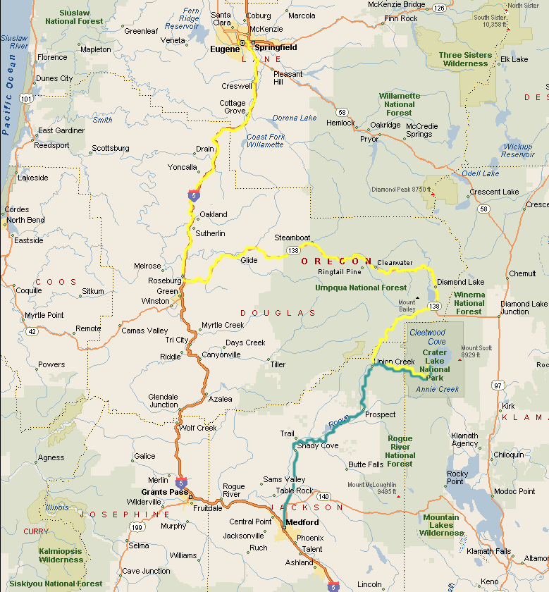 I found a nice, reasonable motel in Eugene and settled in for the night. Tomorrow on to Mount Saint Helens, maybe with a stop to visit the brother of a friend.