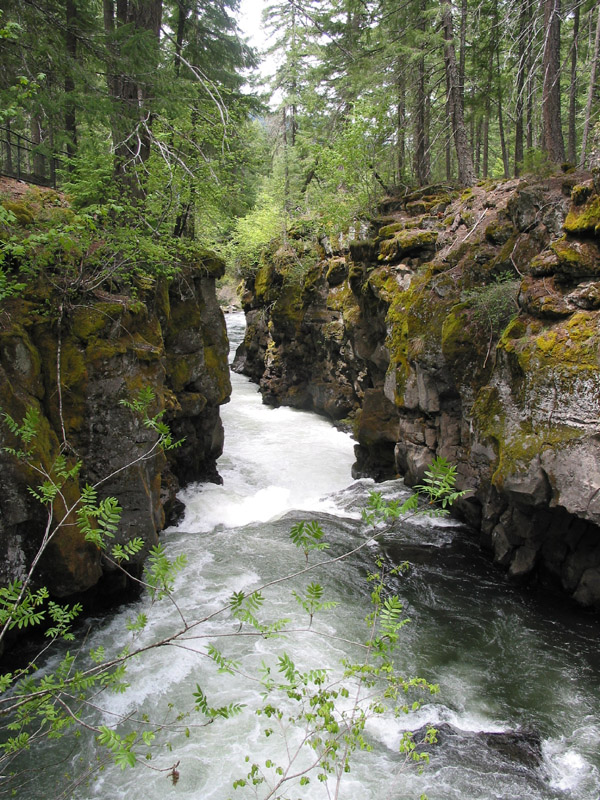 Along the way I stopped at the Rogue River Gorge. The river bed was formed in collapsed lava tubes, instead of the usual erosion process. This makes for very steep walls and dramatic rapids.
