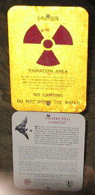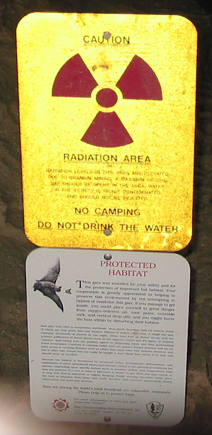 top sign warns of radiation in the area, in the local water, etc. The bottom