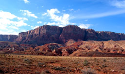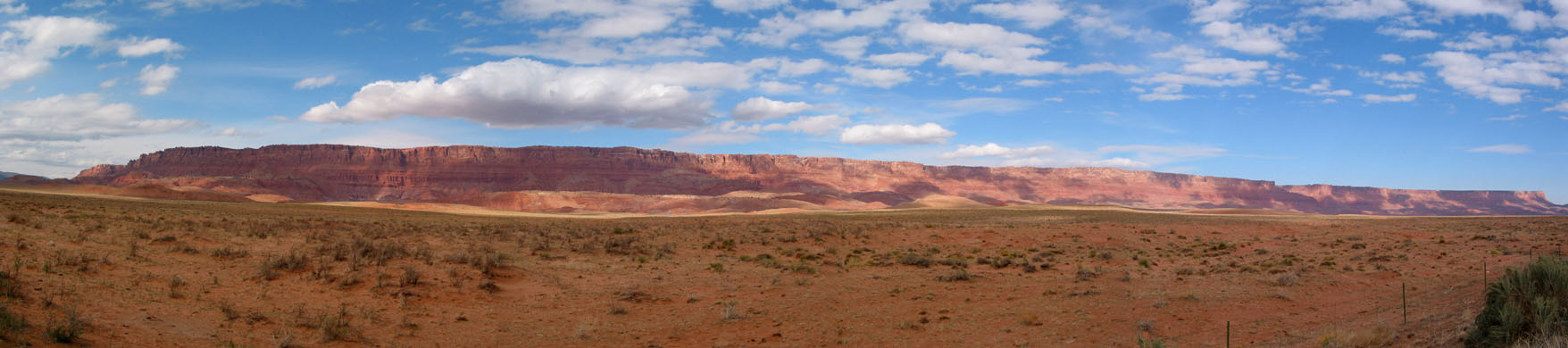 This is known as the Vermilion Cliffs, many miles of purple-red precipice running for miles and miles, extending from southern Utah into northern Arizona - if it weren't for the sparse green vegetation and the blue of the sky, this could be Mars.