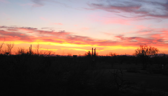 The saguaro cactus is the trademark of the Sonoran Desert. They don't grow above about 3300 feet, and are only found in Arizona, northern Mexico and a small part of California. When I started seeing them, I knew I was close to home.