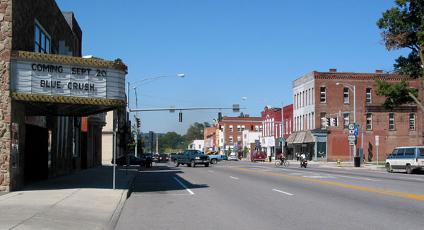 an old-style movie theater, some restaurants and taverns, an insurance agency,